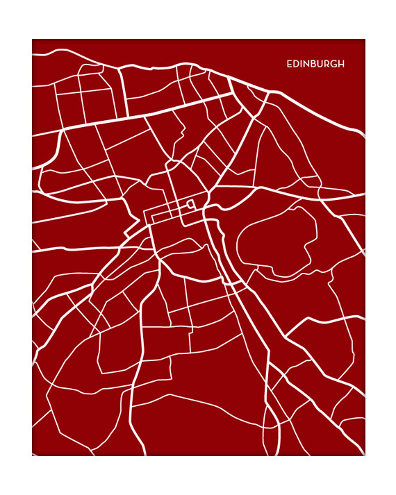 Display your cosmopolitan side with this city map art print of Edinburgh, Scotland! Choose your background color to match your décor. Great alone or grouped with other cities for an upscale urban feel.