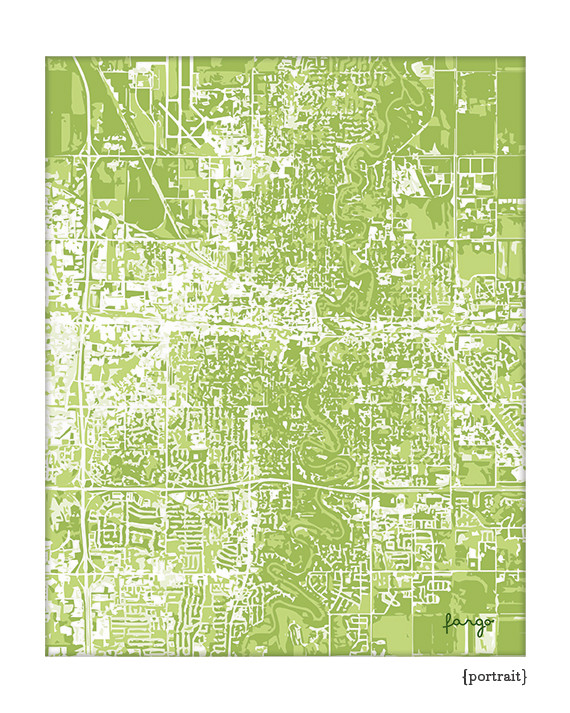 Represent North Dakota's largest city with this abstract aerial map of Fargo! Choose your favorite color theme to match your décor. Makes the perfect dorm decor or grad gift for local University students!
