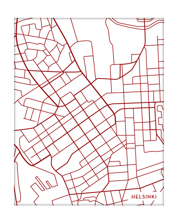 Represent Finland's capital and largest city with this abstract map art print of Helsinki! Choose your background or line color to match your décor. Great alone or grouped with other cities for an upscale urban feel.
