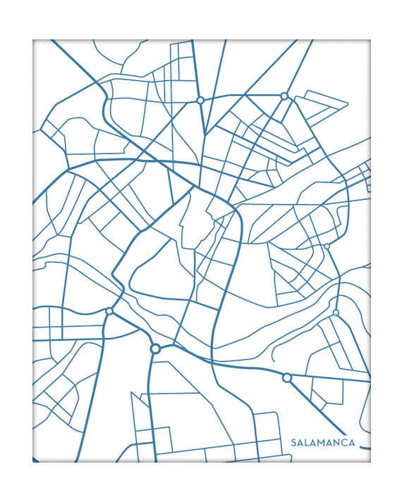 Display your cosmopolitan side with this city map art print of Salamanca, Spain! Choose your background color to match your décor. Great alone or grouped with other cities for an upscale urban feel.