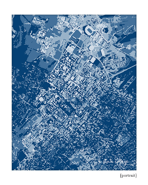 Represent your favorite college town with this aerial abstract art of State College/University Park! Personalize it with the color scheme of your choice. Perfect for Penn State grads, staff and alumni!