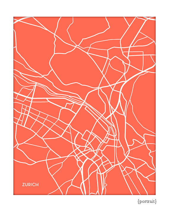 Display your cosmopolitan side with this city map art print of Zurich, Switzerland! Choose your background color to match your décor. Great alone or grouped with other cities for an upscale urban feel.